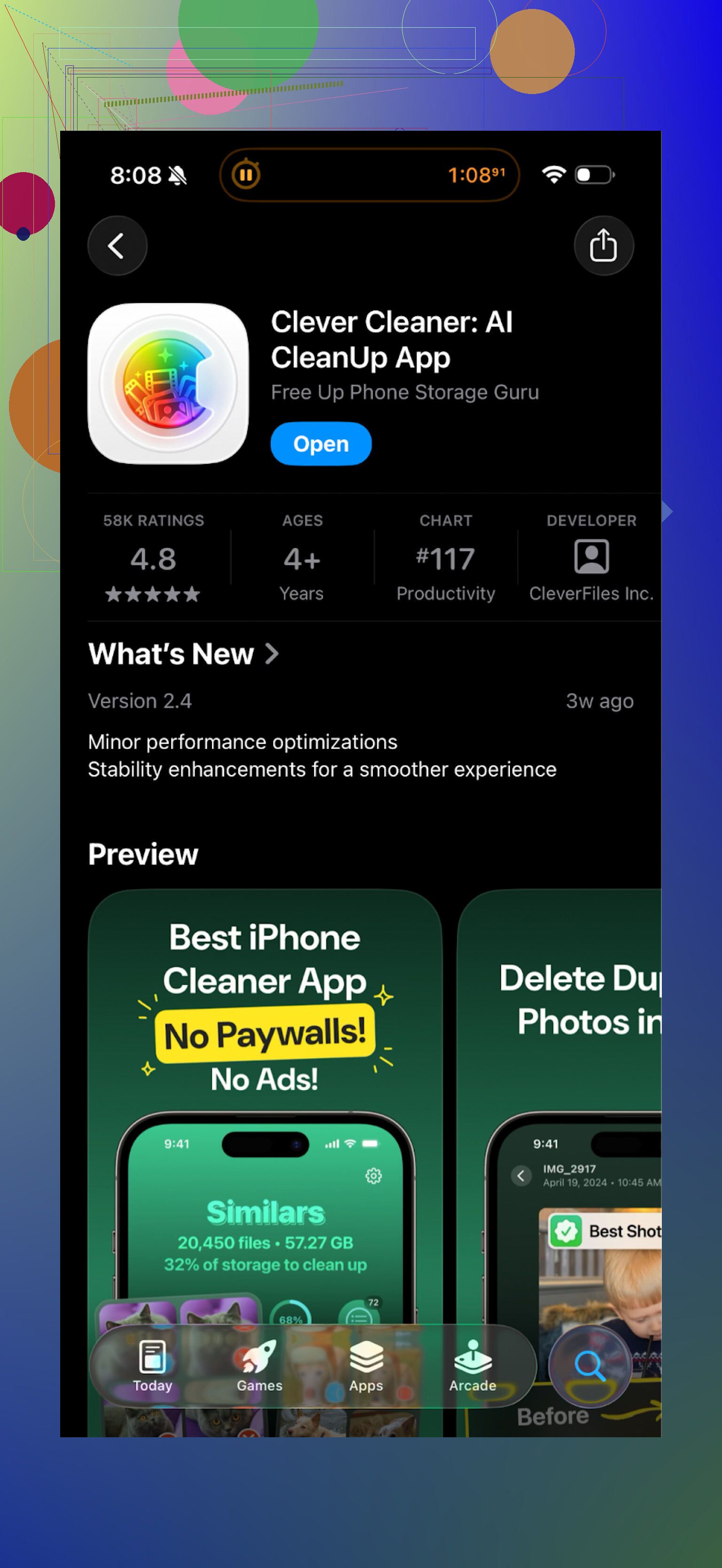 I hit the “iPhone storage almost full” wall again and got tired of doing the manual photo cleanup thing. So I tried the Cleanup App (Phone Storage Cleaner) to see if it would save me some time.