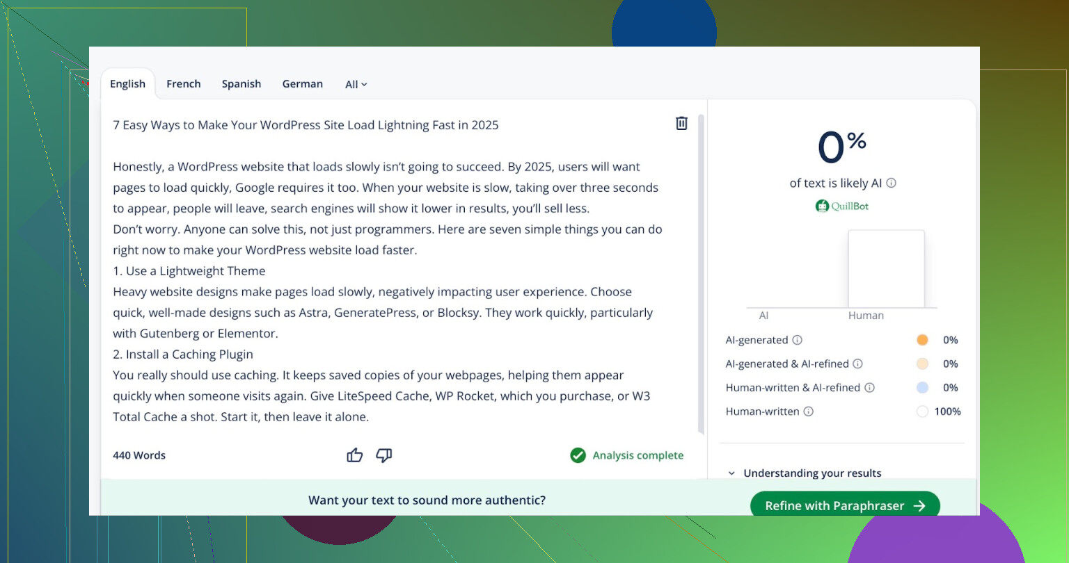 Took it out for a spin with text in a couple of languages (French and Spanish, too—don’t judge, I had late-night energy). It humanized stuff lightning-fast. But, heads-up: some punctuation gets a little wild—there were moments when it forgot commas existed, and certain sentences felt like they got run through “Simplify Everything 3000™.” But for a free tool? Worth 1st place in my personal free-to-use rankings.