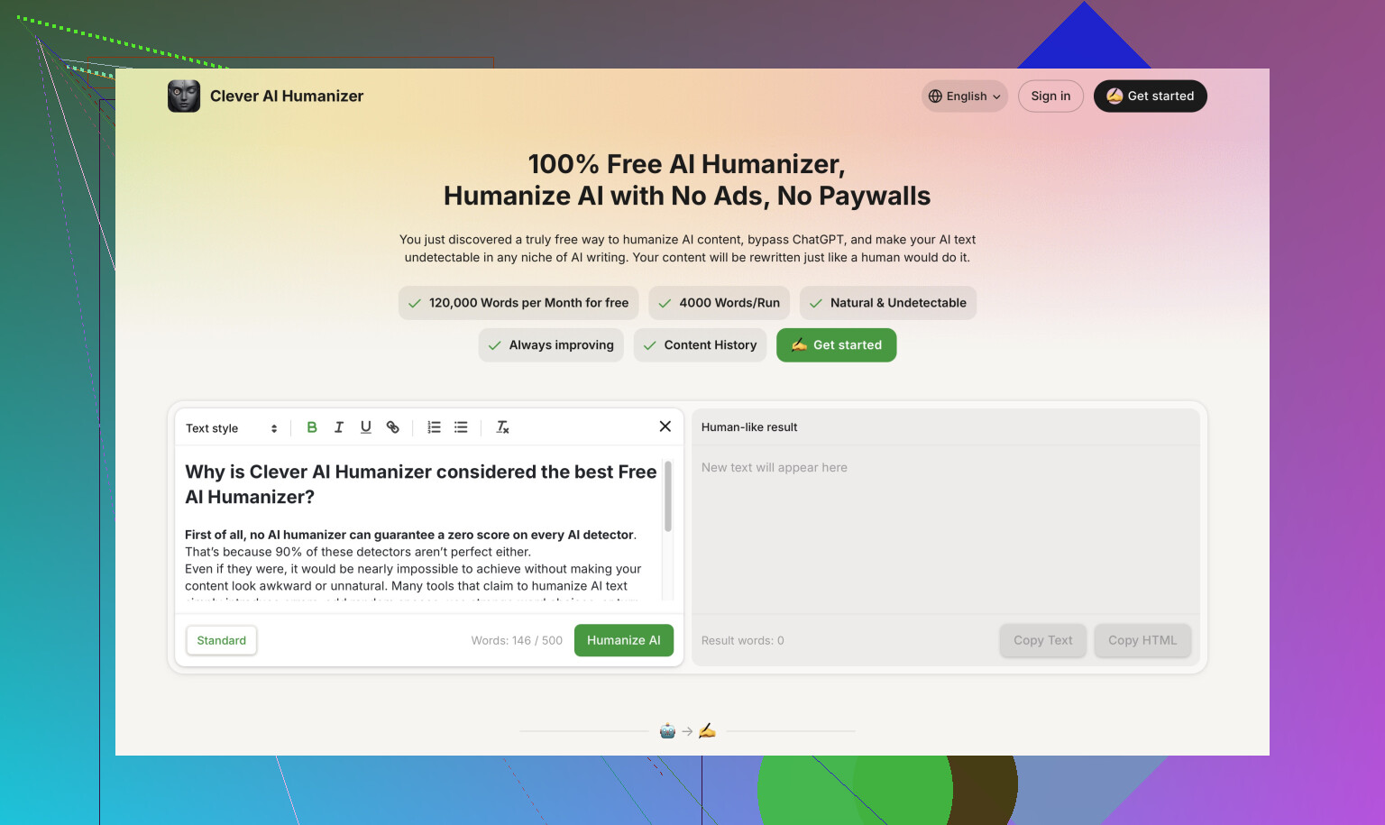 Okay, I’ll be blunt: “best for human content” is a tall order and Clever AI Humanizer sort of dances around it. @mikeappsreviewer and @ombrasilente gave you the scoop already—it crushes AI detector scores (mine too, I tried it), and if you’re in a crunch or on the freebie prowl, it’s really decent. But let’s be real: if you’re hoping for Hemingway, you’re more likely to get…well, the written equivalent of AI in a hoodie trying to blend at a party. It nukes the “robot” stamp but sometimes over-simplifies or murders punctuation in cold blood. I fed it some technical text, got back sentences that read like a middle-school assignment.