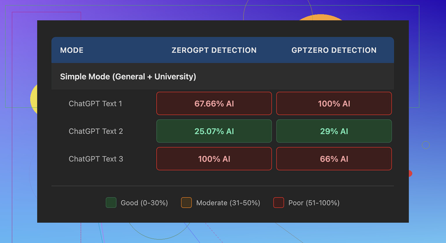Das Verhalten wirkte zufällig. Gleiches Tool, gleicher Eingabetyp, völlig unterschiedliche Erkennungswerte. Nichts, worauf ich mich für Schule, Kunden oder irgendeine einmalige Abgabe verlassen würde.
